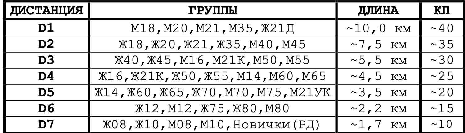 Участвующие группы и предварительные параметры дистанции