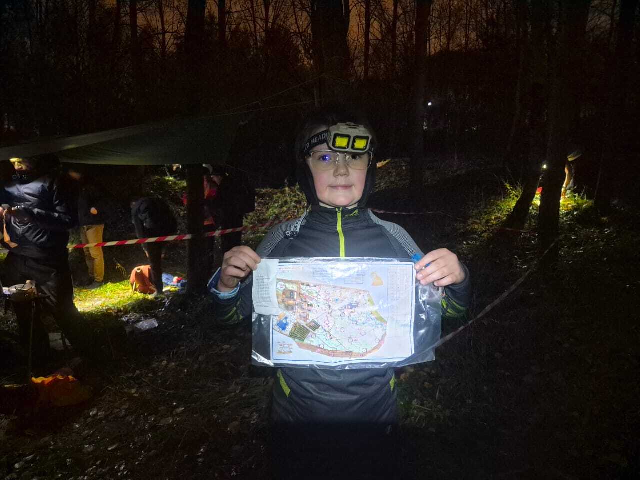 Хотя было очень темно, это было интересно. Ночные соревнования мне понравились, потому что я первый раз бегал с фонарём, а рядом со мной бегали другие ориентировщики, поэтому было нестрашно. Я не успел найти все КП до закрытия финиша, но всё равно очень рад.